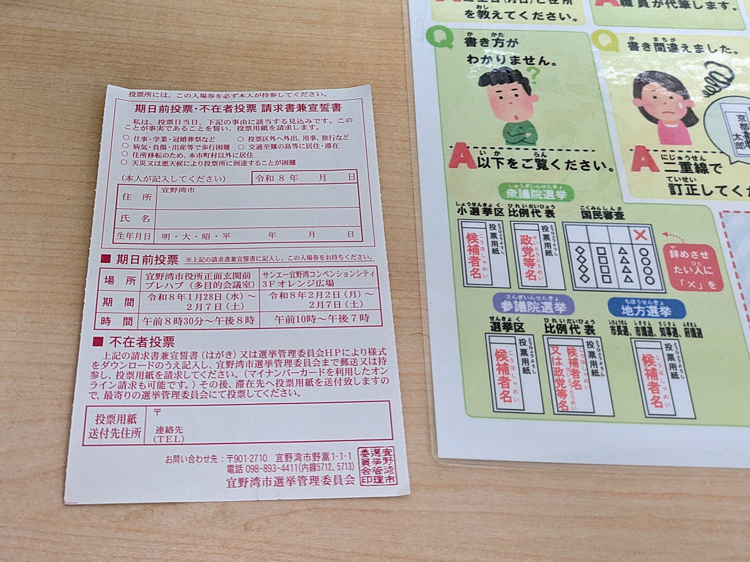 ・期日前投票の場合、投票権の裏側に直筆で氏名・住所を記入することを初めて知りました。