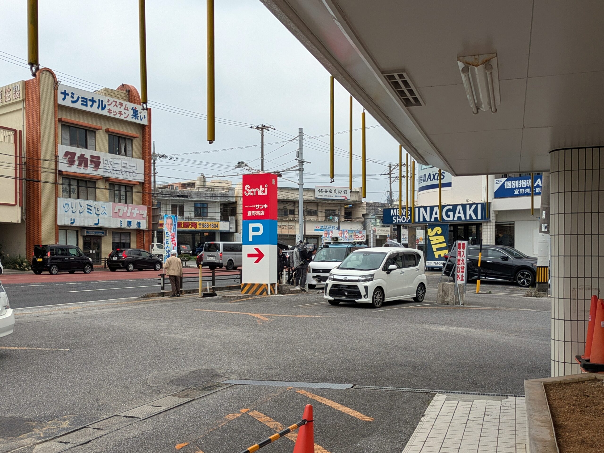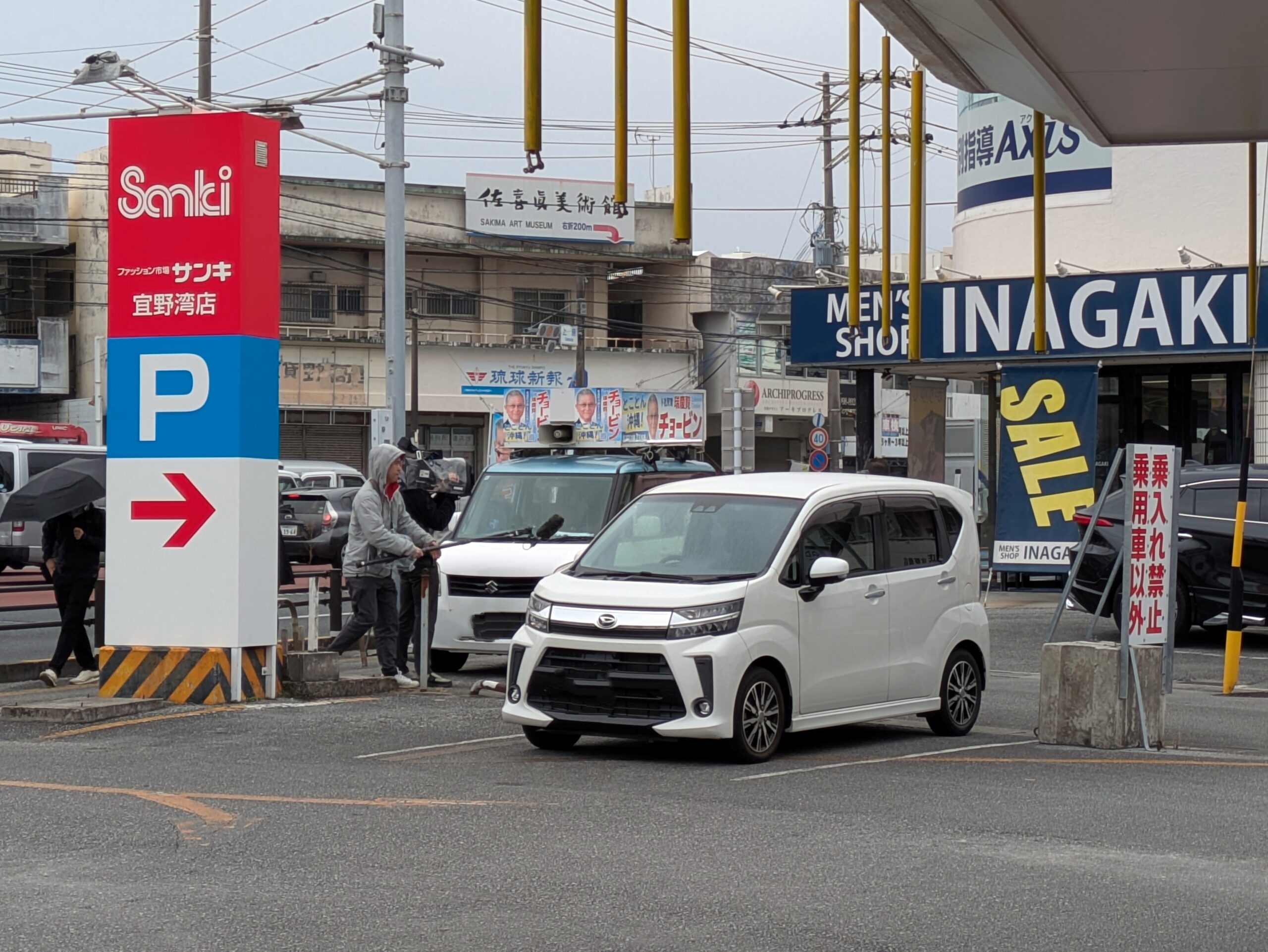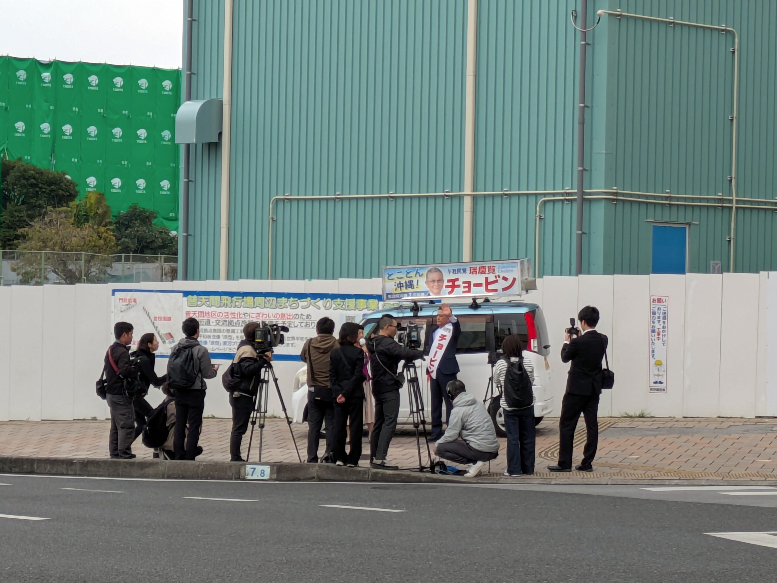 ・13時50分ぐらいに上原交差点(メンズショップ・イナガキ前)に一行がスタンバイしていました。ひとつ気になったのが報道陣の車両をユニオン上原店の駐車場に停めていたように見受けられた件です。もちろん事前に許可を取ってますよね?