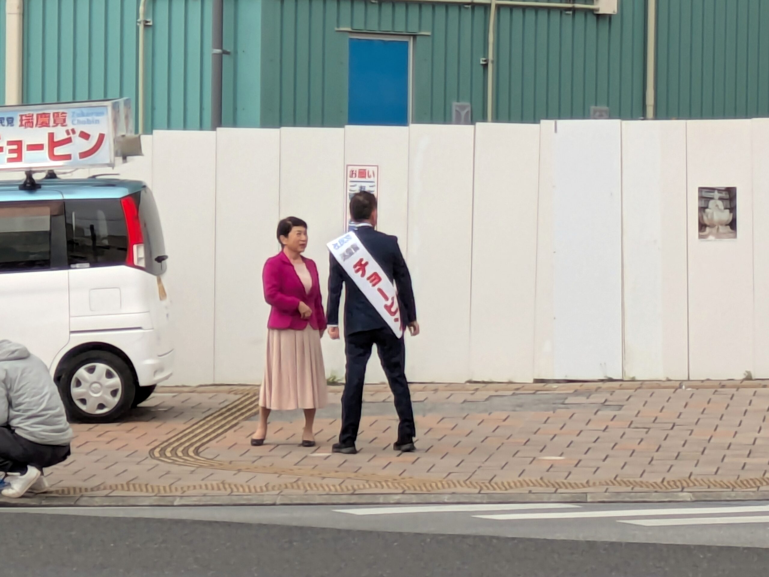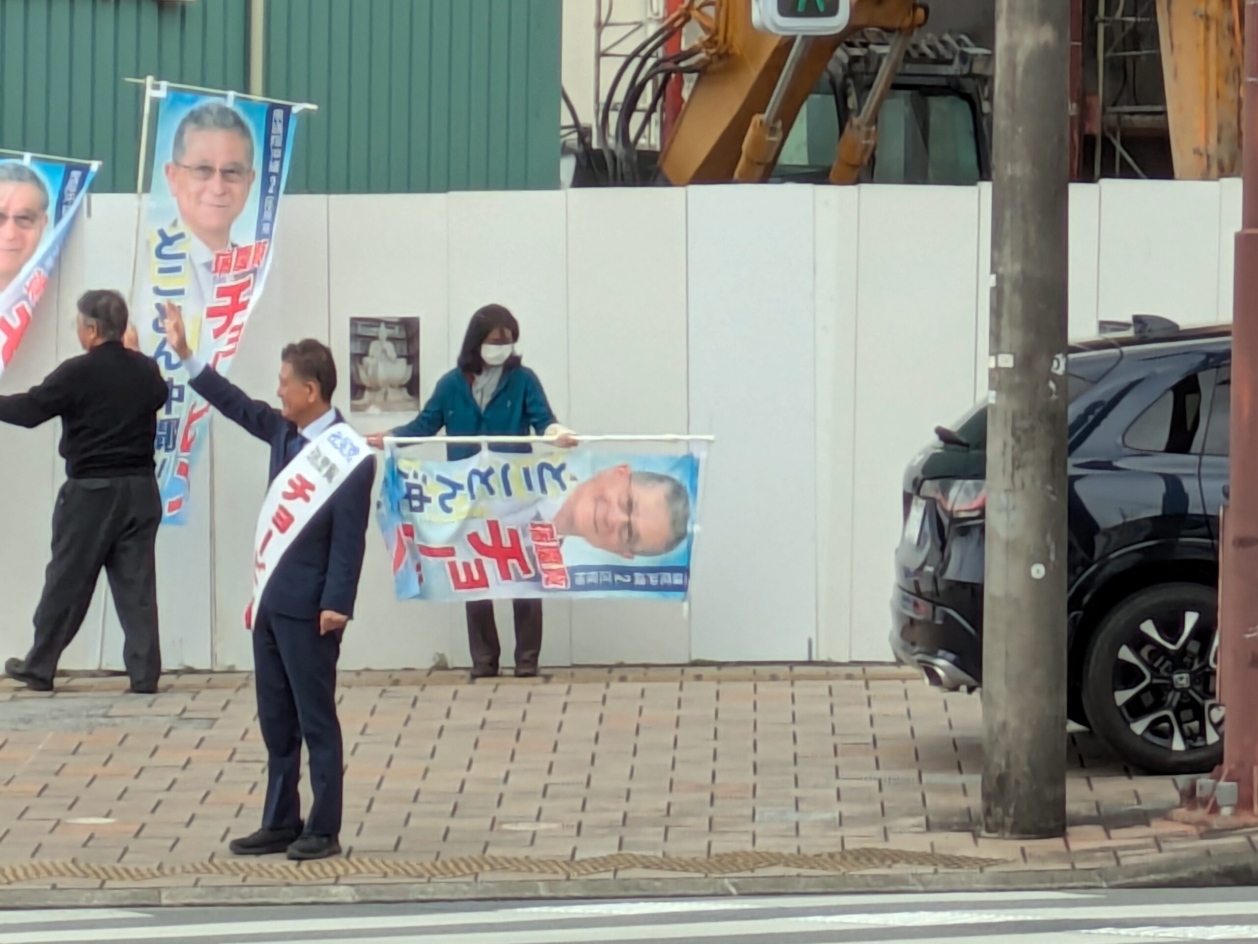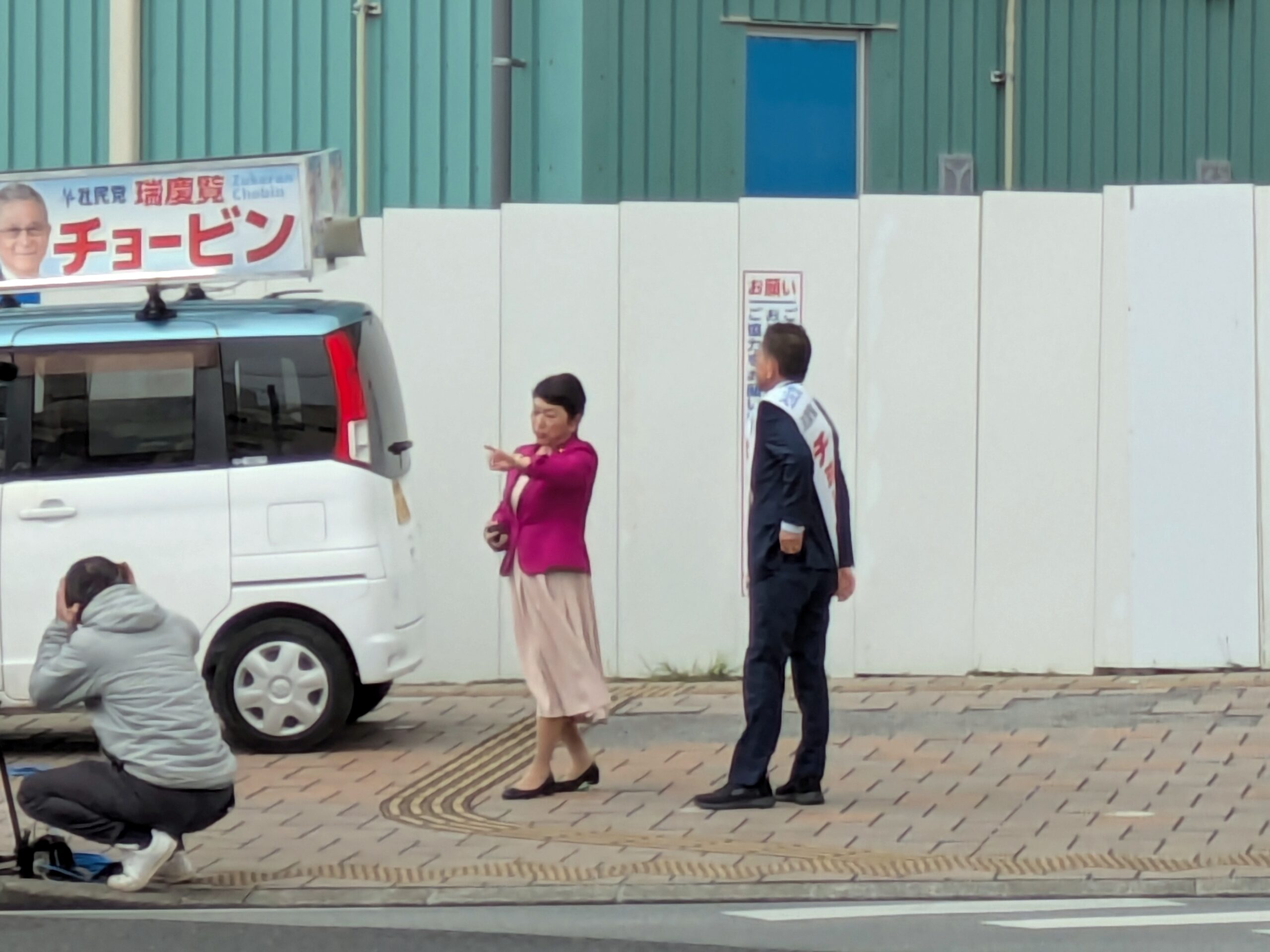 ・あまり長居はできないので、運転しながら街頭演説の様子を見ましたが、聴衆は2名ぐらいだったような……