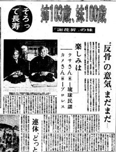 【昭和のりうきう】そろって長寿 – 姉103歳、妹100歳 / 「謝花昇」の妹