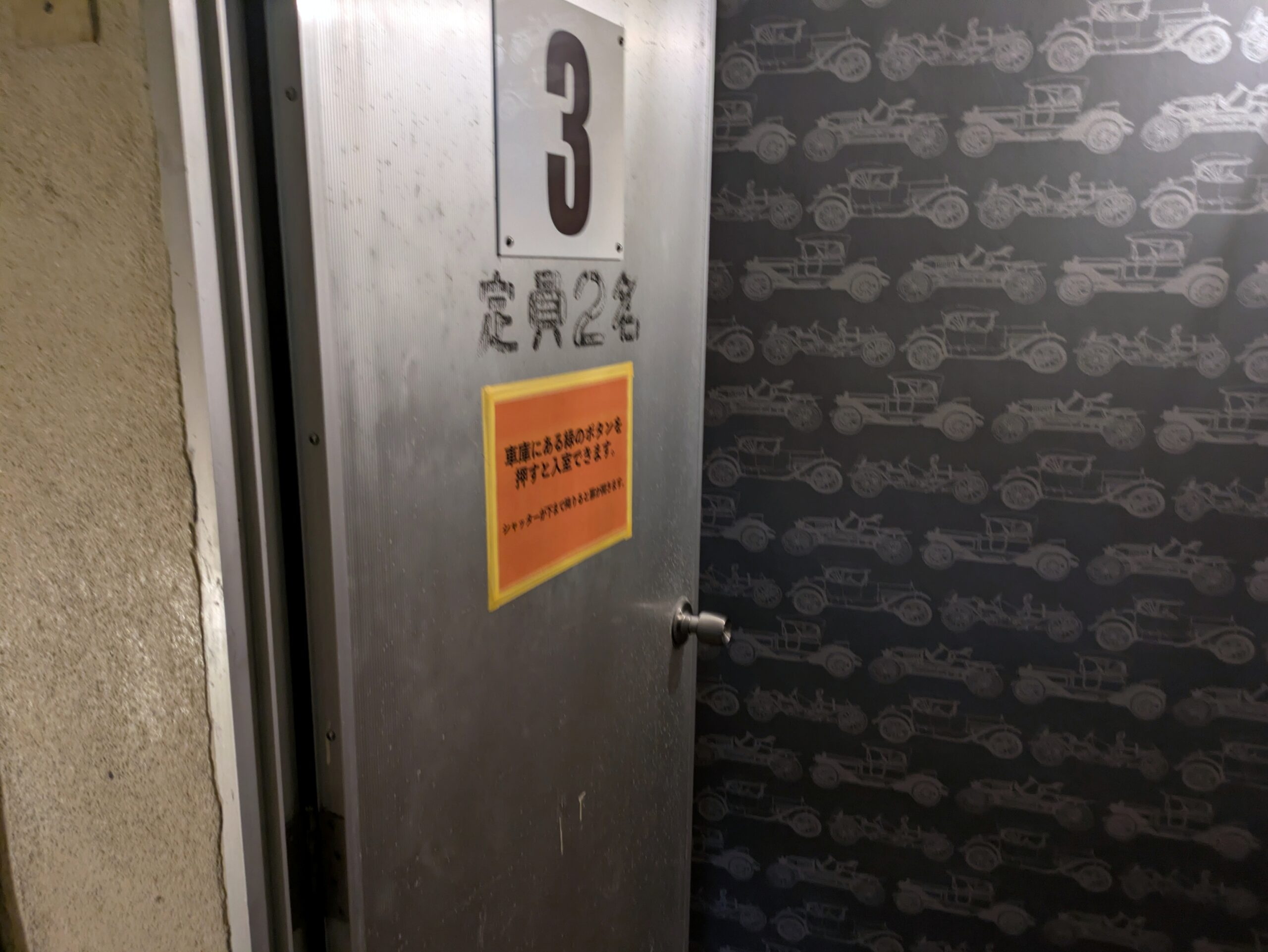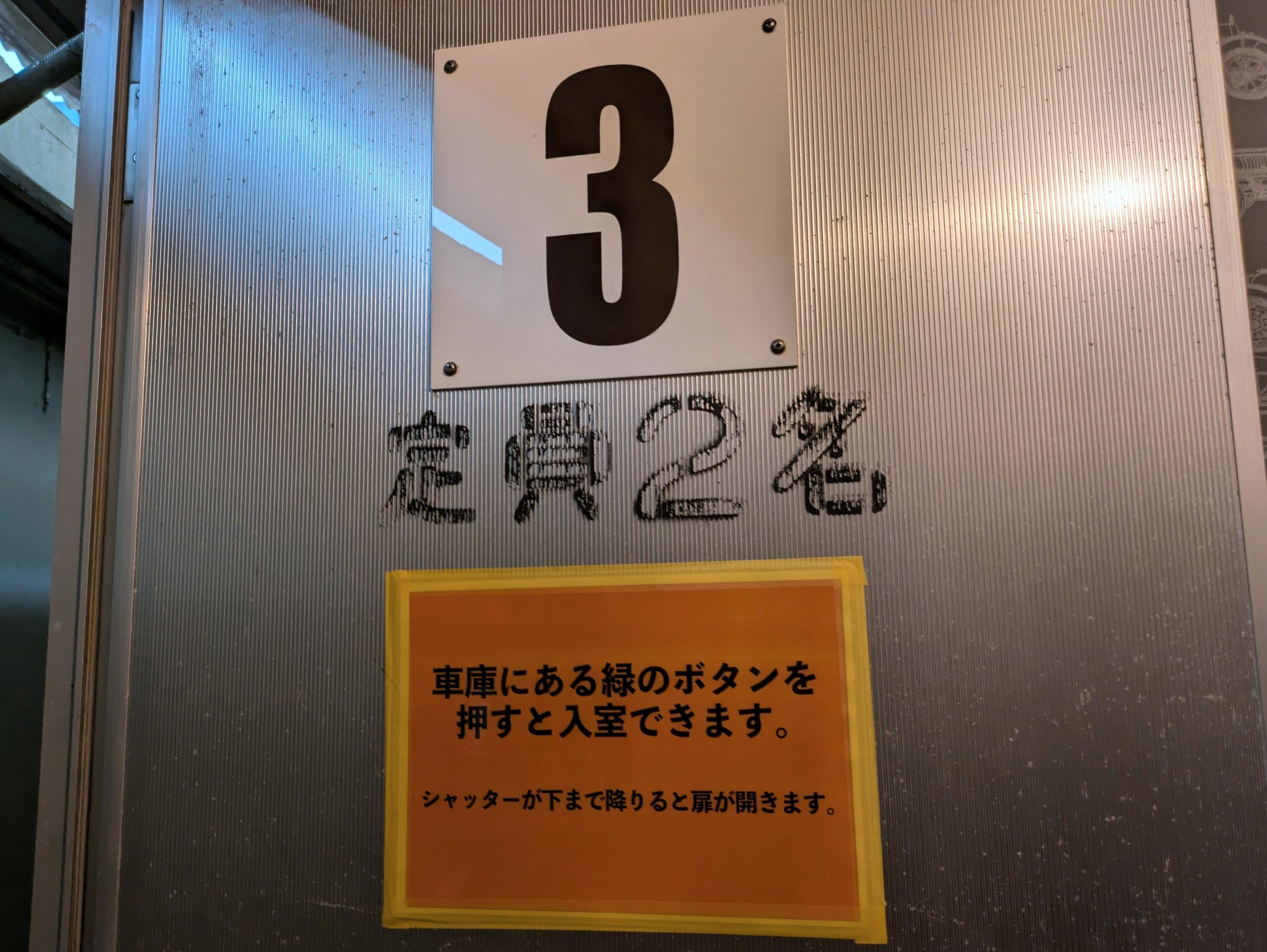 ・自動車ホテルですので、もちろん車ごと入室します。そして入庫したら緑のボタンを押します。