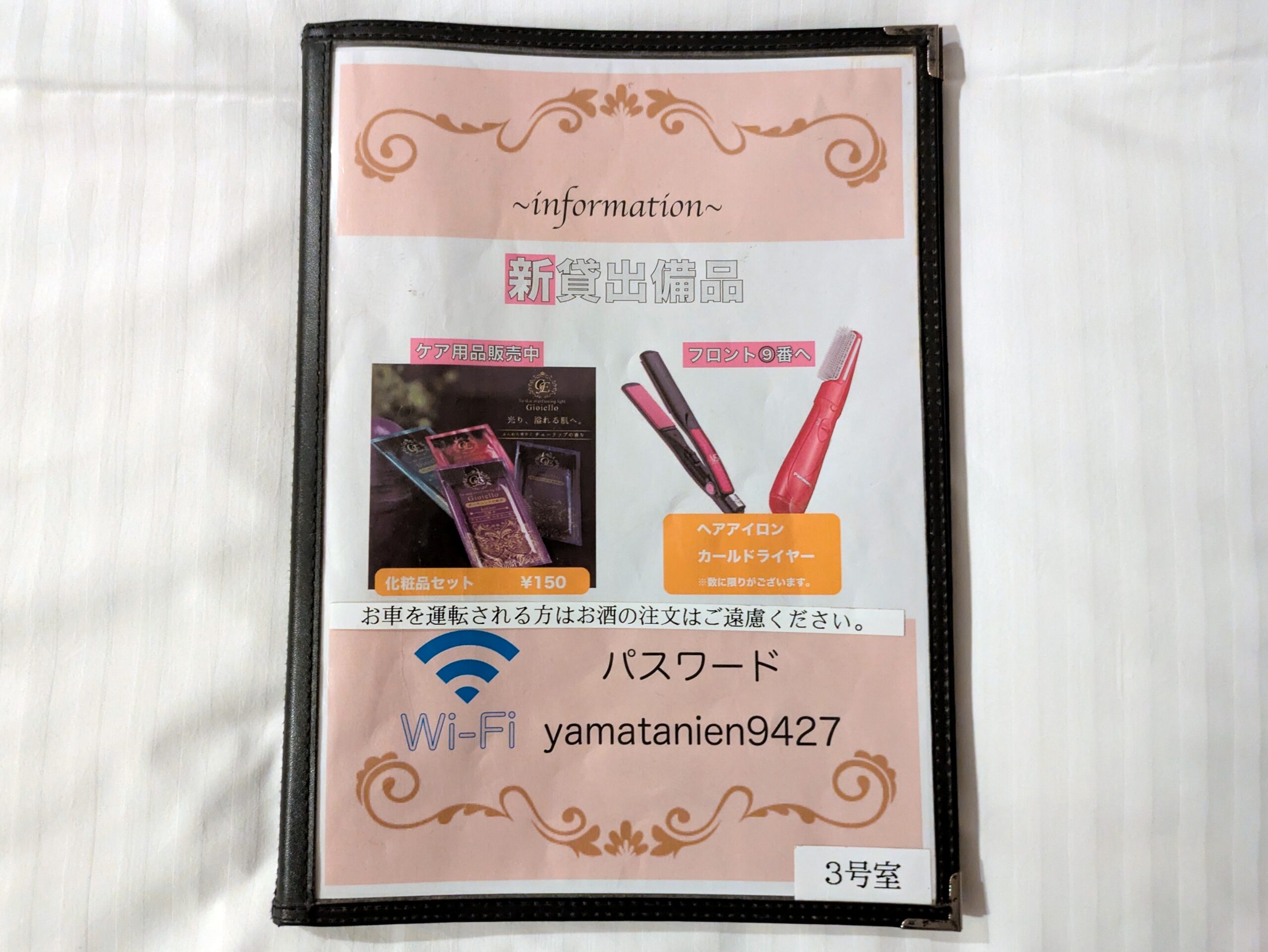 ・infomationのパンフです。Wi-Fiサービスはもはや必須、料金表もご参照ください。