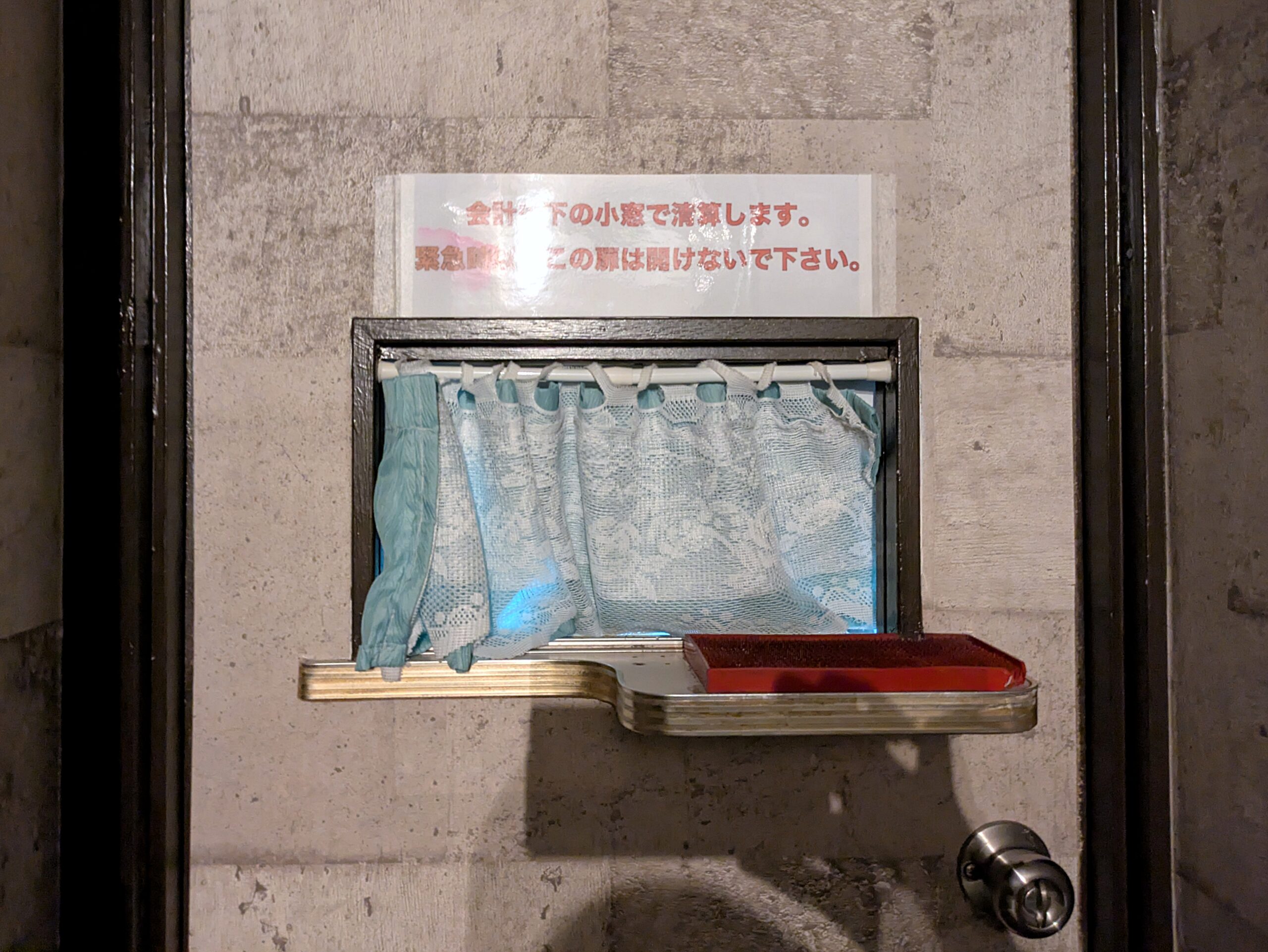 ・さてと、ゆっくりくつろいだので部屋備え付けの小窓で精算します。なお、現金だけではなくクレカ決済可能です。